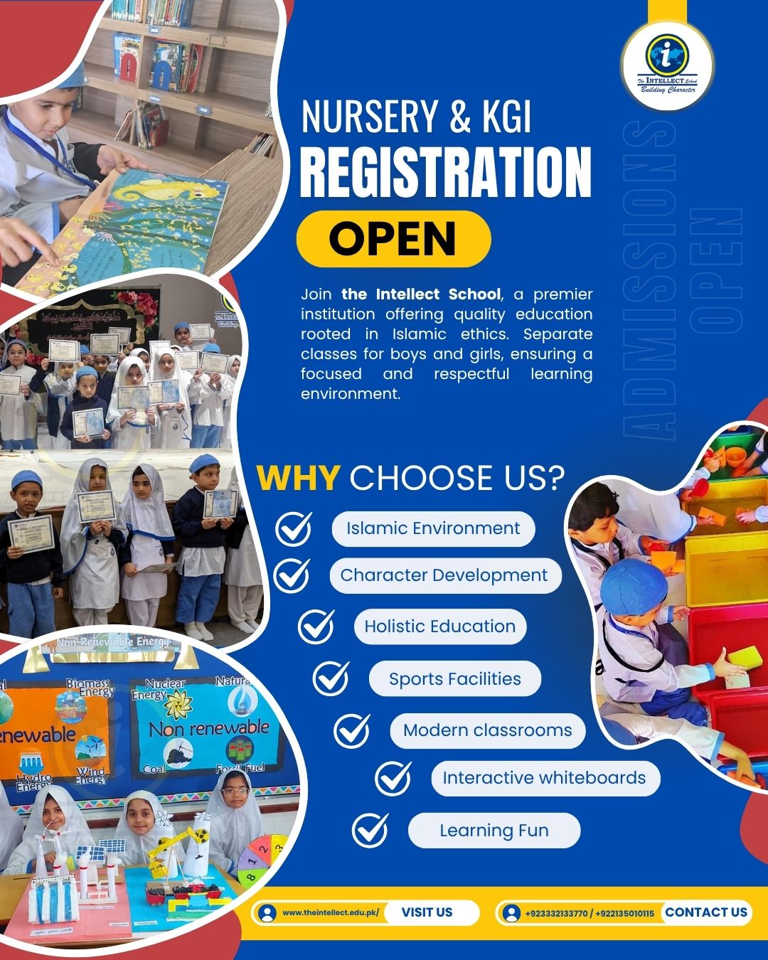 The Intellect School invites applications for Nursery & KGI classes for the academic session 2026-27.